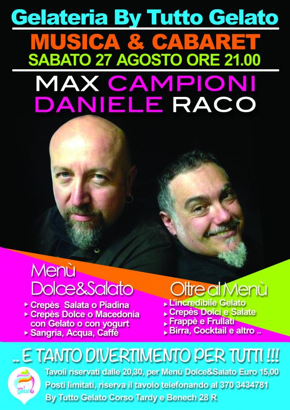 Sabato questo 27/08 ore 21.00 avrà luogo l'evento "Musica e Cabaret" condotto da due comici di fama nazionale "Daniele Raco e Max Campioni".