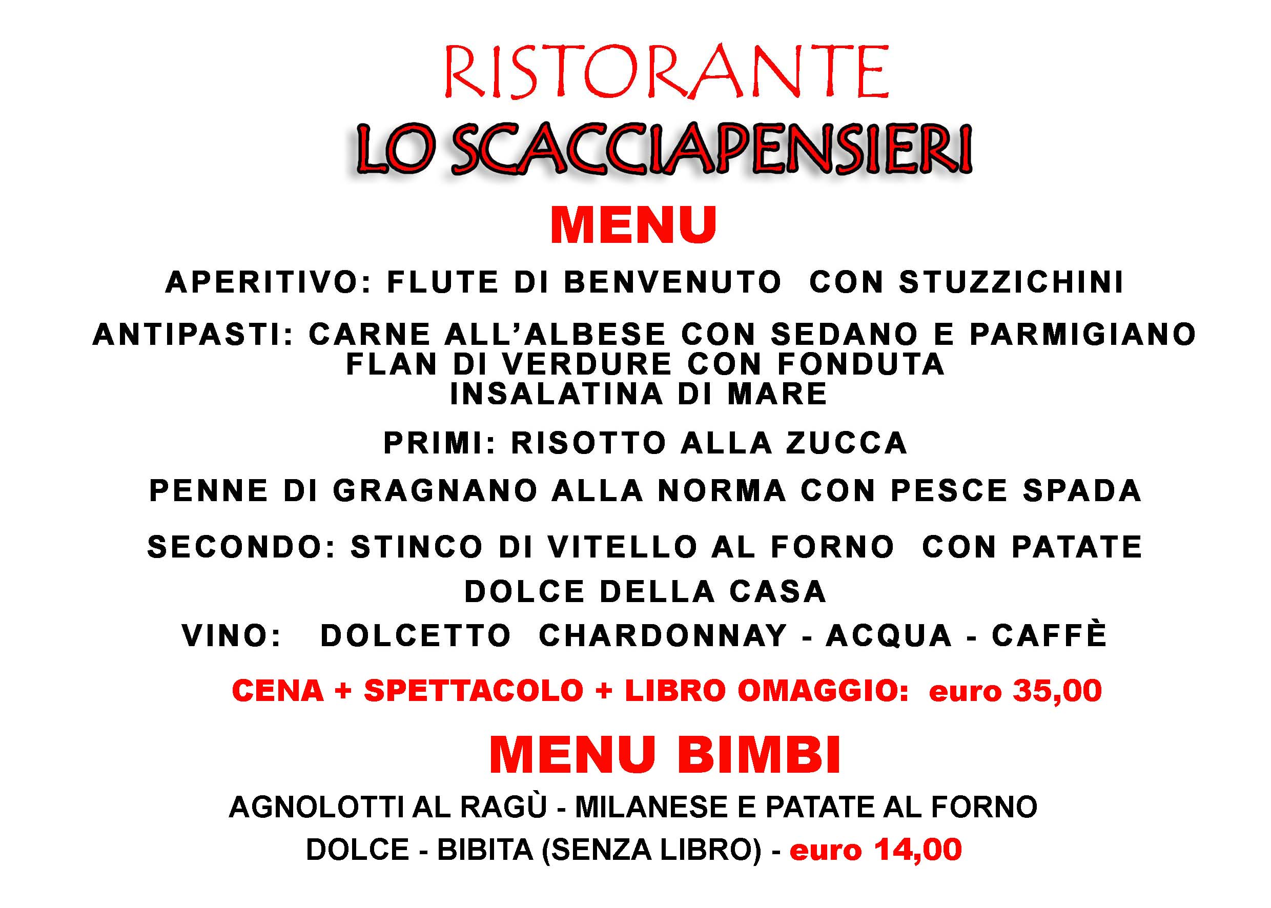 Nella splendida location del Ristorante Lo Scacciapensieri, Via Valdellatorre 267, Alpignano, la comitiva degli autori del Circolo Artistico e Letterario Hogwords darà vita (o morte...) ad una comica Cena con delitto deliziando i commensali con battute a raffica, spesso improvvisate sul momento e fuori copione. Fabrizio Legger, Daniel Falco, Teresa Scalzo, Sara Quero, Junaid Kahn, Gabriella Gumina, Annamaria Grimaldi, Danilo Tacchino, Pier Giorgio Tomatis, si alternano nell'intrattenimento di un vasto e attento pubblico. Liberamente ispiratisi alle creature di Agatha Christie, Sir Arthur Conan Doyle, Blake Edwards, i 6 attori che di volta in volta si susseguono tra i tavoli del Ristorante recitano, intrattengono ma perlopiù vivono delle situazioni misteriose e gialle. Più di un'ora di spettacolo (che con la cena diventano almeno tre) per poi svelare l'identità dell'assassino e premiare i migliori classificati soddisfano le esigenze del pubblico ma è il dopo che la formula di Hogwords diventa vincente. La lettura e l'interpretazione di quanto scritto da coloro che si classificano nella Side B (così vengono chiamati) è spassosissima e merita da sola il prezzo della cena.