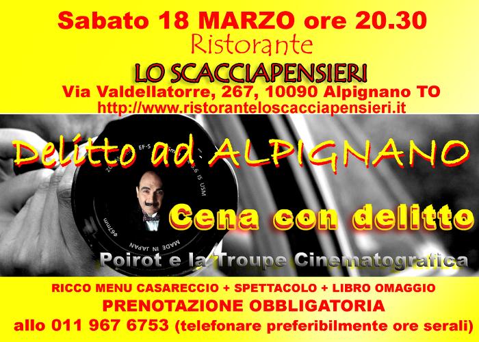 Il 18 marzo 2017, la terra dij Cossot di Alpignano, nel ristorante Lo Scacciapensieri apre le porte agli appassionati di una buona CENA ma con… DELITTO!Due spari nel buio turbano i convenuti…Un cadavere giace nella sala proiezioni; i sospettati si accusano a vicenda…Per fortuna c'è il famoso Ispettore belga, Ercules Poirot che con l'aiuto del pubblico -attento e fantasioso- scopre dinamica e assassino del povero produttore Daniel Movie…