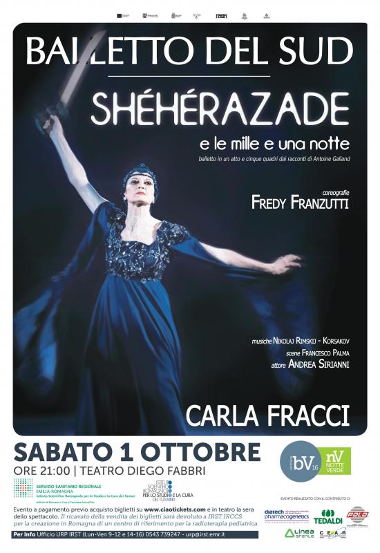 Anche quest'anno l'Istituto Tumori della Romagna (IRST) IRCCS sarà partner della Settimana del Buon Vivere 2016, giunta alla sua settima edizione, con uno spettacolo di beneficenza dal grandissimo impatto emotivo e di notevole valore artistico."Shéhérazade e le mille e una notte", balletto in atto unico in cinque quadri, è un omaggio all’antica città siriana di Palmira ispirato ai racconti d’oriente di Antoine Galland, sulle esotiche melodie di Nikolaj Rimsky-Korsakov.