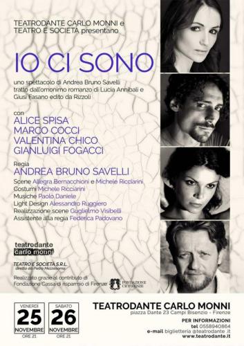 Dice il regista Bruno Savelli: “Io ci sono nasce da una pulsione: quella di schierarmi contro l’ingiustizia terribile e cruenta che Lucia Annibali ha dovuto subire. La sua storia, infatti, avrebbe potuto essere quella di ciascuno di noi. Così è partito il tentativo di portare la sua vicenda sul palcoscenico, a cui sono seguiti la lettura del libro, la riduzione del testo per il teatro e gli incontri con Lucia, che ha accompagnato e dato il suo assenso alla stesura della drammaturgia. La gestazione dello spettacolo è durata due anni e mezzo. Al primo incontro con Lucia, l’unica condizione che ci ha posto è stata che lo spettacolo rispecchiasse completamente la storia che aveva scritto. In scena vedremo quello che le è accaduto, attenendoci alla sua versione. Per la scelta degli attori, fondamentale è stato l’apporto del coproduttore romano Pietro Mezzasomma, che mi ha proposto la giovane e straordinaria attrice fiorentina per il ruolo di Lucia, Alice Spisa, un’artista meravigliosa che ha aderito perfettamente al ruolo. Poi ci sono Valentina Chico, che conosco da 12 anni ed ho fortemente voluto in questo progetto, e Gianluigi Fogacci, con cui è una prima collaborazione. Ho proposto a molti attori importanti il ruolo di Luca Varani, e alla fine abbiamo scelto Marco Cocci, che conoscevo già da tempo: lui è stato tra i primi a credere che potessi fare il regista, 15 anni fa. Tra i quattro si è creata subito una bellissima alchimia. Porteremo lo spettacolo in giro il lavoro l’anno prossimo; abbiamo l’esclusiva per l’Italia e al momento stiamo lavorando con l’associazione antiviolenza Artemisia. Sarebbe bello avviare una collaborazione con il Ministero delle Pari Opportunità dove adesso Lucia lavora, per creare un progetto che segua e anticipi lo spettacolo. La violenza sulle donne è un fenomeno sempre più dilagante che va fermato il prima possibile, soprattutto nei giovani”.