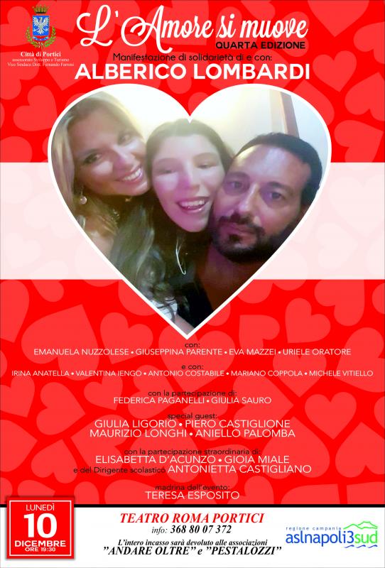 Quarta edizione dell'amore si muove, manifestazione di solidarietà ideata e condotta dal professore ed artista Alberico Lombardi per raccogliere fondi per associazioni che operano nel campo delle diverse abilità. Lunedi 10 dicembre, evento di punta del cartellone porticese natalizio, si preannuncia come una serata ricca di emozioni che vedrà protagonisti i ragazzi che si esibiranno, ma anche con la partecipazione, tra gli altri, di artisti conosciuti come Elisabetta D'acunzo, Gioia MIale, Giulia LIgorio e i musicisti Aniello Palomba e Piero Castiglione.