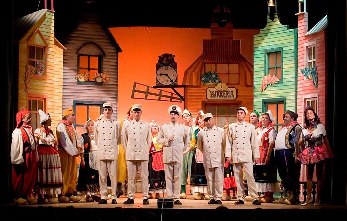 Patrizia Bozzo (Nela), Giorgio Bressan (Hans), Ramon Paganelli (La Gaffe), Russana Lunardi (Bombon), Caterina Buzzo (Pomerania), Giuseppe Gentilotti (Tom), Alice (Ethel), Pietro Cancemi (Attanasio), Vincenzo Petrelli (Tarquinio), Alessandro Vitiello (Basilio), Olga Patrone, Maria Luisa Annunziata, Leda Cuccurullo e Ameris Gualandi (donne del villaggio). Lo spettacolo è accompagnato dal pianoforte del maestro Giampiero De Paoli, le scene e i costumi sono curati dalla compagnia Amici dell'Arte. La regia è di Anna Olivari.