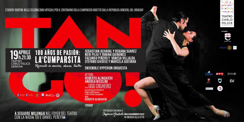 Grazie a Regione Liguria, Ambasciata dell’Uruguay in Italia, Consolato dell’Uruguay a Genova e ad alcuni importanti sponsor, in una serata magica tutti potranno assistere a uno spettacolo inedito, creato per l’occasione e offerto alla Città, durante il quale alcune stelle del tango mondiale, insieme all’Ensemble Hyperion Orquesta e ad appassionati attori del Teatro Stabile di Genova racconteranno una straordinaria storia in musica, un viaggio nella storia della nostra città tra fine Ottocento e primi del Novecento, che si intreccia alla storia dei Grandi del tango più amati, da Canaro a Gardel, a Rosita Melo, Horacio Ferrer e molti altri.