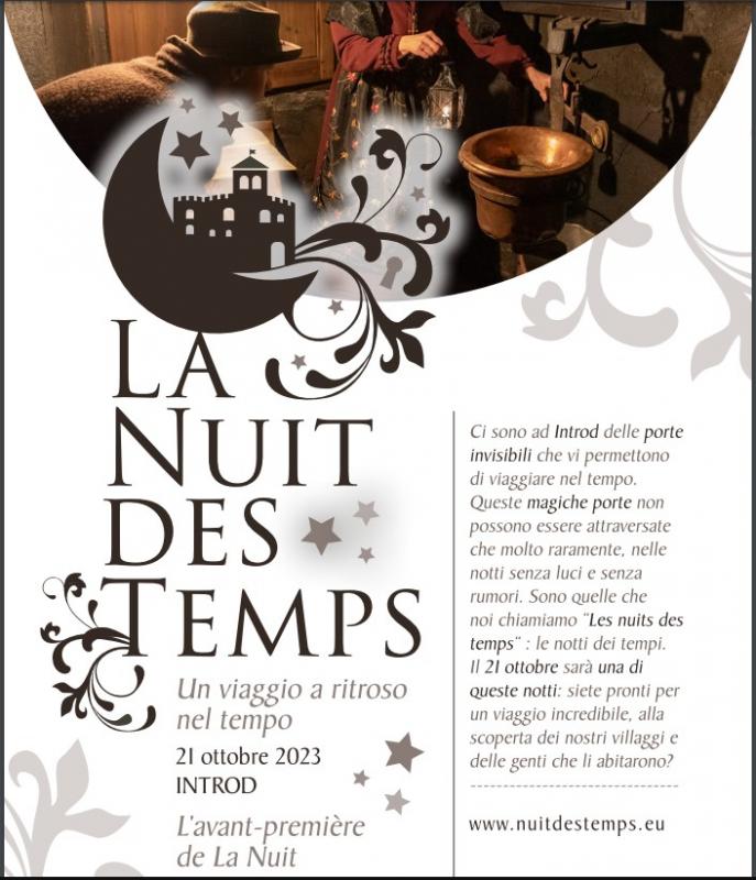 Ci sono a Introd delle porte invisibili, che vi permettono di viaggiare nel tempo. Queste magiche porte non possono essere attraversate che molto raramente, nelle notti senza luci e senza rumori. Queste notti sono dette “Les Nuits des Temps”: le notti dei tempi.