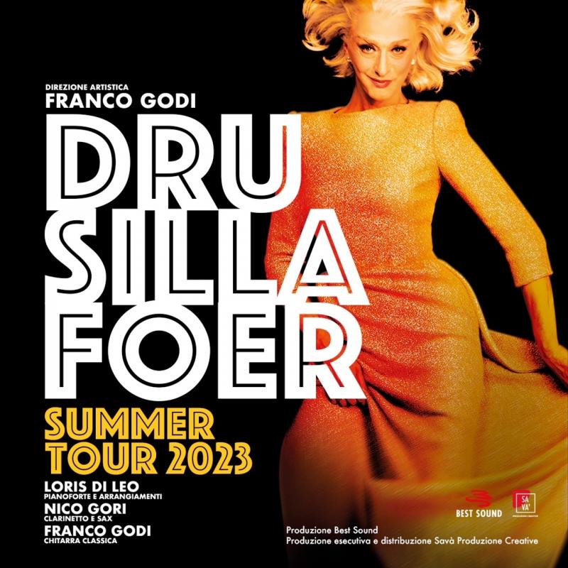 Drusilla Foer, cantante, attrice e autrice, è da tempo un'icona di stile. Frequenta con successo teatro, radio, televisione e cinema, diventando in breve una star di culto anche sul web, con oltre 800.000 follower attivi su Instagram, 900.000 su Facebook e 70.000 su Youtube. Personaggio irriverente e antiborghese, si presta spesso a sostegno di cause sociali importanti. Posa per fotografi, stilisti e artisti di prestigio internazionale. È autrice e interprete di due spettacoli teatrali: il recital di straordinario successo, divenuto un format di culto, Eleganzissima, e Venere Nemica, uno spettacolo ispirato alla favola di Amore e Psiche, in scena in anteprima all’inizio del 2020. Fra le varie esperienze televisive è stata giudice di Strafactor, talent nel talent di X Factor, poi editorialista a Matrix Chiambretti su Canale 5, ospite fissa a CR4 La Repubblica delle Donne in prima serata su Rete 4 e in Ciao Maschio in seconda serata su Rai 1, prima di arrivare alla popolarità estrema in quanto co-conduttrice insieme ad Amadeus del Festival di Sanremo 2022. In radio è ospite residente del programma Facciamo Finta Che… di Maurizio Costanzo e Carlotta Quadri su R101. Nel 2021 è uscito per Mondadori Tu non conosci la vergogna, edito da Mondadori il suo primo libro. In maggio 2022 presenta con Carlo Conti la 67° edizione dei David di Donatello, il premio cinematografico italiano, in diretta su Rai 1. In giugno è in onda su Rai 2 la striscia quotidiana Drusilla e l’Almanacco del Giorno Dopo, il suo primo programma televisivo da conduttrice, che ritorna con un nuovo ciclo alla fine dello stesso anno. Il 20 giugno 2022 viene insignita del Nastro D’Argento per il cameo nel film Sempre più Bello. Il tour di Eleganzissima Estate da luglio a settembre 2022 si snoda fra 24 repliche trionfali nelle arene e anfiteatri più prestigiosi d’Italia. A inizio ottobre 2022, Drusilla torna in scena per il secondo anno al Teatro Olimpico di Vicenza, protagonista di un progetto sontuoso per il 75° Ciclo dei Classici, come voce narrante de l’Histoire du Soldat - musica di Igor Stravinskij, libretto di Charles Ferdinand Ramuz - nella versione del regista Giancarlo Marinelli, con André De La Roche nei panni del Diavolo (e coreografo) e Beatrice Venezi direttore d’orchestra a guidare nell’esecuzione dal vivo l’ensemble dell’OTO. Nuovi progetti la attendono per tutto il 2023 nella musica, in teatro e in televisione.