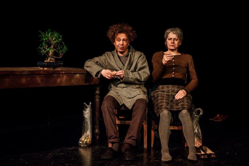 La regia di Roberto Bacci, che cura anche lo spazio scenico, si mette al servizio della parola e della densità concettuale del testo e costruisce, tra pochi oggetti di scena, una sapiente geometria di movimenti. In scena, oltre a Santeramo, anche Silvia Pasello, nei panni della moglie malata, Francesco Puleo, il cognato del nullafacente, Vittorio Continelli, il padrone di casa e Tazio Torrini, nel ruolo del medico. Anche questi ultimi maschere, paradigmi, simulacri di necessità trascurabili, tre intrusi che irrompono nella casa della strana coppia ciascuno con le proprie ossessioni e il proprio punto di vista, divisi dai diversi comportamenti ma uniti dalla stessa comune morale (che la coppia invece rifiuta).