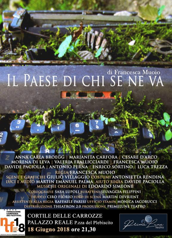 Lunedì 18 giugno a Napoli, presso il Cortile delle Carrozze di Palazzo Reale, nell’ambito del Napoli Teatro Festival, la compagnia PrimeLune debutta con Il Paese Di Chi Se Ne Va.