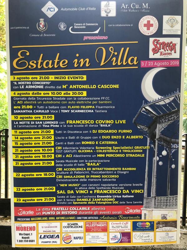 L'evento si svolge nella villa comunale e prevede serate di musica lirica e leggera, balli e animazione dalle ore 21.00 nei giorni 3, 4, 10, 11, 14, 15, 21, 22 e 23.