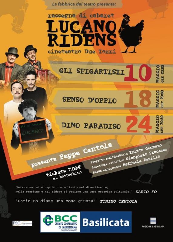 Il 10 maggio si apre il sipario della prima edizione di “Lucano Ridens”, rassegna di cabaret con artisti lucani. Tre date presso il cineteatro 2 Torri di Potenza. A cura dell’associazione “La fabbrica del teatro”.