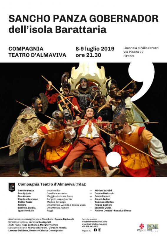 Lo spettacolo “SANCHO PANZA GOBERNADOR dell'Isola Barattaria” è realizzato dalla Compagnia Teatro d'Almaviva è una rilettura del Don Chisciotte, com'era percepito ai tempi di Cervantes, una figura comica e ridicola nella sua pazzia.