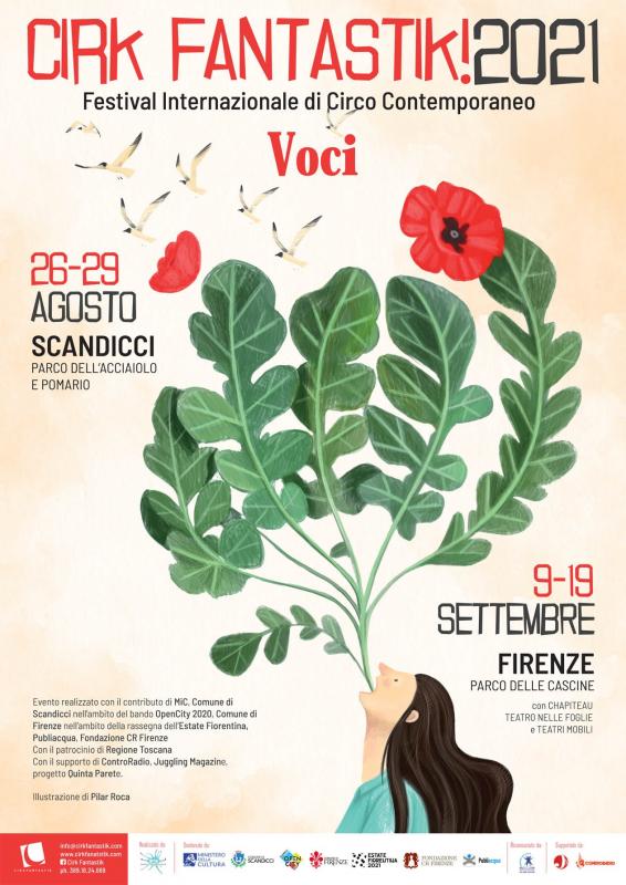Cirk Fantastik 2021 è un progetto di Aria Network realizzato con il contributo di Mic – Ministero della Cultura, Fondazione CR Firenze, Comune di Scandicci - Scandicci Open City 2021, Comune di Firenze – Estate Fiorentina, Publiacqua. Media partner: Quinta Parete, Juggling Magazine e Controradio.