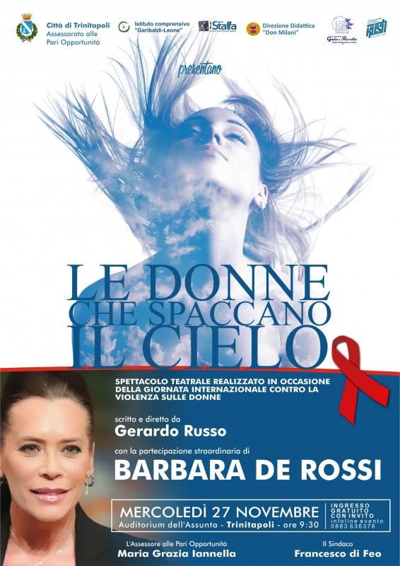 Il Comune di Trinitapoli, nelle persone del sindaco Francesco di Feo e del vicesindaco Maria Grazia Iannella, assessore alle Pari Opportunità, si è sempre dimostrato attento alle iniziative dai forti risvolti pedagogici e sociali, avvalendosi di personalità celebri del panorama dello spettacolo italiano, grazie alla creatività dell’autore e produttore Gerardo Russo. Il 27 novembre un’altra figura di assoluto rilievo onorerà la comunità casalina. Barbara De Rossi era giovanissima quando esordì come figlia di Marcello Mastroianni nel film “Così come sei” di Alberto Lattuada. Da allora è partita una carriera prestigiosa che le ha conferito grande popolarità, conquistata anche con le fiction televisive, a cominciare da “La Piovra”, a cui sono seguiti molti altri successi anche cinematografici e teatrali.
