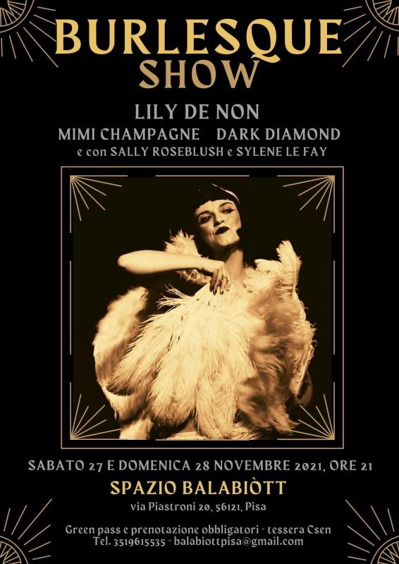 Il vero classic burlesque con numeri completamente nuovi: un inno alla bellezza femminile in tutte le sue forme, lontano dalla volgarità e dagli stereotipi. Due serate di puro divertimento e glamour.