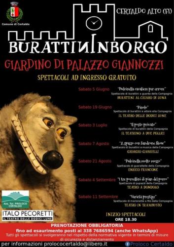 Si tratta della rassegna di teatro di marionette per la direzione artistica del certaldese Italo Pecoretti e l'organizzazione dell'associazione culturale Pro Loco, di casa nel giardino di Palazzo Giannozzi, con sette spettacoli tutti a ingresso gratuito.