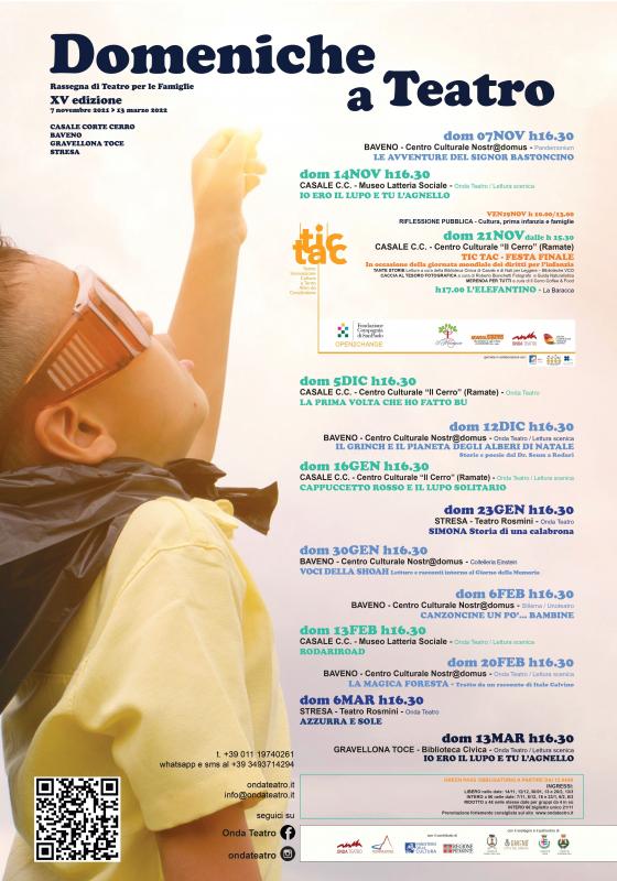 I comuni di Baveno, Casale Corte Cerro, Gravellona Toce e Stresa uniti dall’idea di combattere la rarefazione di occasioni culturali, si sono impegnati con un investimento importante coinvolgendo le istituzioni scolastiche con proposte dedicate in modo particolare ai bambini, alle famiglie e agli anziani.