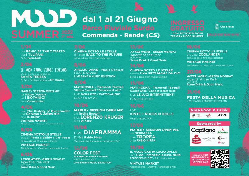 Dall’ 1 al 21 giugno presso il Parco fluviale a Commenda di Rende - Torrente Surdo ritorna il Mood Summer.