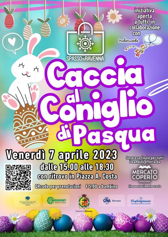 Venerdì 7 Aprile, dalle ore 15 alle 18.30 sarà “Caccia al Coniglio di Pasqua” per tutti i bambini iscritti. L’associazione Tralenuvole organizzerà infatti una grande caccia al tesoro in versione pasquale, con gli indizi disseminati tra i punti vendita del centro storico aderenti a Spasso in Ravenna. Ritrovo in Piazza Andrea Costa, dove sono previsti anche laboratori a tema e trucca bimbi per colorare ulteriormente una giornata di festa. Al termine dell’iniziativa il Mercato Coperto, partner dell’evento, offrirà a tutti i bambini iscritti un bel dono.