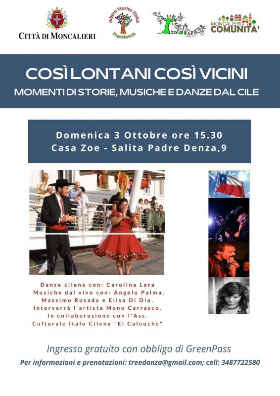 Verranno proposte danze cilene con Carolina Lara, Musiche dal vivo con Angelo Palma, Massimo Rosada e Elisa di Dio.