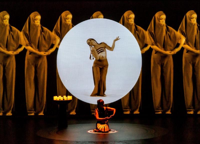 La versione dei fatti di Penelope narrata dalla scrittrice canadese veicola verità profonde sulla condizione sociale femminile del tempo, sul silenzio che ha travolto le donne nella Storia, e getta un ponte con il presente: «Sono diventata una leggenda edificante. Un bastone con cui picchiare altre donne. Non seguite il mio esempio, voglio gridarvi nelle orecchie! Ma quando cerco di gridare, la mia voce è quella di un gufo». Parlano anche le dodici ancelle impiccate da Ulisse e dal figlio Telemaco, la cui condizione non si discosta di molto dalla regale Penelope: «Noi conosciamo la versione di Ulisse, ma di Penelope sappiamo ben poco – dichiara Michela Embrìaco, regista e interprete che ha curato anche la riduzione drammaturgica – ci racconta di quando viene data in sposa ad Ulisse, tramite una gara di corsa, perché nella Grecia antica le donne venivano messe all’asta e l’uomo che ne usciva vincitore riceveva in cambio la donna e il matrimonio. Penelope è una principessa, una donna con dei privilegi, ma senza possibilità di scegliere; nello spettacolo accanto a lei, nel video proiettato sul fondale, ci sono anche le ancelle, il Coro: sono donne del popolo, donne che non hanno voce in capitolo e che con le loro domande inquietano Ulisse e Penelope».