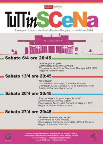 Torna anche nel 2024 ad aprile, TuTTinSCeNa, rassegna di teatro comico-brillante a Borgoricco organizzata da Camerini Con Vista con il patrocinio del comune di Borgoricco.