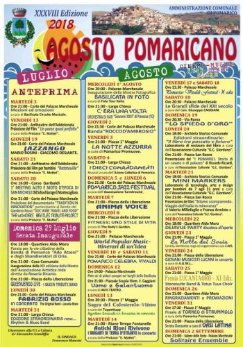 Anche quest'anno l'Agosto Pomaricano porta una lunga serie di eventi a Pomarico: sagre, concerti, master class, cover band, premi, rassegne culturali, teatro, divertimento.
