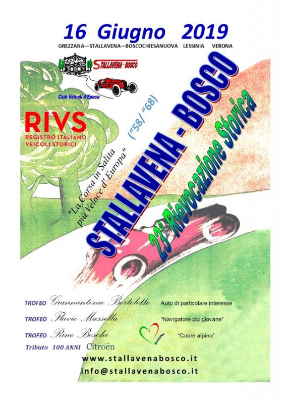 Domenica 16 Giugno 2019, come da oltre tre Lustri la terza Domenica di Giugno gli organizzatori vi danno appuntamento alla 23° Rievocazione Storica "Stallavena Bosco", manifestazione turistica di Auto d' Epoca e Storiche nella bella cornice dei monti Lessini, Verona.