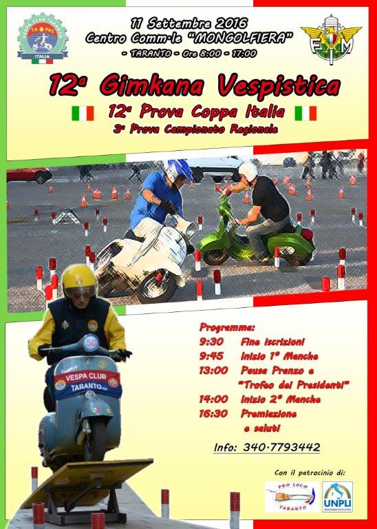 La manifestazione organizzata dal Vespa Club Taranto è prova valida per il campionato regionale Puglia e contestualmente per la Coppa Italia Nazionale organizzata dal VC Italia.