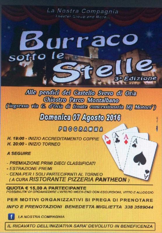 Burraco Sotto Le Stelle: 3ª edizione del Torneo di Burraco a Oria il 7 agosto 2016 al Parco Montalbano - Sabba, Via G. D’oria.