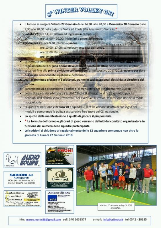 Info: marco.morini88@gmail.com cell. 340 9633574 e-mail: info@csiimola.it tel.0542 - 30335