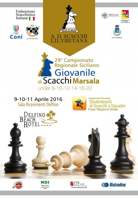 Tutto è pronto per i Campionati Regionali Giovanili ed i Campionati Giovanili Studenteschi in programma questo weekend a Marsala. Presso gli accoglienti locali della Sala Ricevimenti Delfino, sabato pomeriggio 9 aprile alle 15.30, vi sarà il “bianco in moto” della 29^ edizione di questa prestigiosa manifestazione regionale; sarà il Sindaco di Marsala, dott. Alberto Di Girolamo, a dare il via a questo importante evento scacchistico, dove circa 200 ragazzi provenienti da tutta la Sicilia, si contenderanno i titoli regionali nelle varie categorie (under 8, under 10, under 12, under 14, under 16 e under 20).