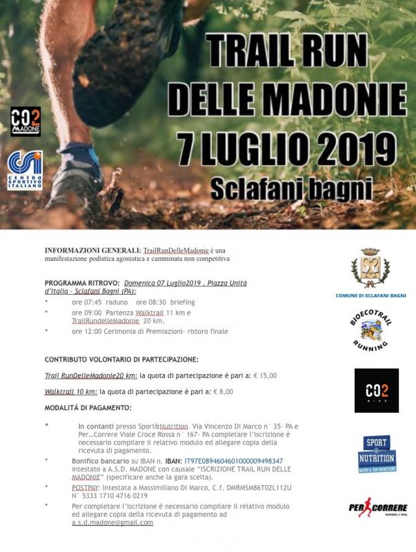 Questa prima edizione del “Trail Run delle Madonie” organizzata dalla ASD MADONE vuole promuovere il territorio e le bellezze naturalistiche che i fortunati partecipanti troveranno lungo l’impegnativo circuito di 20km, opportunità unica per conoscere da vicino in modo particolare la Città di Sclafani Bagni e le sue peculiarità.