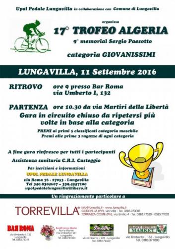 E’ ai nastri di partenza la 17esima edizione del Trofeo Algeria, organizzato da Pedale Lungavilla in collaborazione con il Comune e la Parrocchia, in ricordo di Sergio Paesotto, a lungo volontario dell’associazione sportiva, scomparso 9 anni fa.