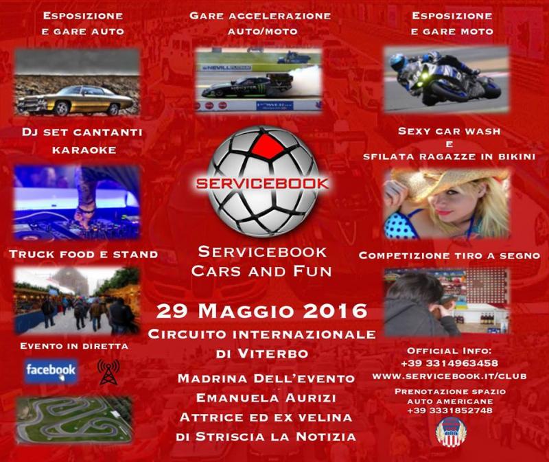 1° Tappa Servicebook Cars and Fun con la partecipazione straordinaria dell'attrice ed ex velina di Striscia la Notizia Emanuela Aurizi presso il Circuito Internazionale di Viterbo,parcheggio interno alla pista sorvegliato a pagamento comprando la cartolina Cagliari al costo di 2 euro e biglietto visitatori al costo di 5 euro a persona...
