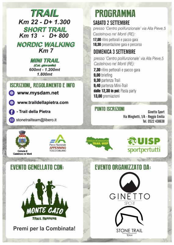 CASTELNOVO MONTI – Grande appuntamento tra sport e valorizzazione del territorio attorno a Bismantova domenica, 3 settembre, con la giornata dedicata al Trail della Pietra. Non una, ma ben 4 gare, per andare incontro alle capacità e ai desideri di tutti coloro che vogliano trascorrere una giornata percorrendo sentieri e itinerari in una delle zone più suggestive della provincia: “Trail della Pietra”, “Short Trail”, “Nordic Walking” e “Mini Trail della Pietra”. L'evento è organizzato da Stone Trail Team ASD di Castelnovo Monti, in collaborazione con il Parco Nazionale dell’Appennino Tosco-Emiliano, il Comune di Castelnovo e la Uisp - Comitato di Reggio Emilia. Il “Trail” completo si svilupperà su un percorso lungo ben 22 km, con un dislivello positivo di 1.200 metri, che viene proposto per la prima volta quest'anno. Lo “Short Trail” avrà invece un tracciato di 13 km con dislivello di positivo di 700 m. L'itinerario dedicato al “Nordic Walking”, non competitivo, sarà di 7 km con dislivello positivo di 400 m. Infine il “Mini Trail” per ragazzi dai 3 ai 17 anni proporrà diversi percorsi, da quello più breve di 600 metri, per passare a 1.200 e 1.800 metri a seconda delle categorie. Per quanto riguarda Trail e Short Trail i tratti asfaltati saranno solo il 5% del totale, mentre il resto sarà su sentieri e carraie, sistemati in queste settimane dai ragazzi dello Stone Trail Team. La gara si svolge nei territori del Parco nazionale, tra scenari e panorami entusiasmanti, compreso il giro sulla sommità della rupe, con veduta dall’alto di tutto l’arco appenninico. Saranno premiati i primi 5 uomini assoluti e le prime 3 donne assolute della gara lunga e i primi 3 uomini e le prime 3 donne della gara corta. “Si tratta di un evento che in pochi anni è stato capace di richiamare moltissimi appassionati – afferma l'Assessore allo sport di Castelnovo, Silvio Bertucci – grazie all'ottima organizzazione e all'impegno dei ragazzi di Stone Trail Team. E' un bellissimo esempio di come si possano coniugare sport, turismo, valorizzazione del territorio: intorno alla gara è stato costruito un evento di tre giorni, il September Tirol Fest, che si svolgerà al Centro Polifunzionale interparrocchiale della pieve l'1, il 2 e 3 settembre, con buon cibo, musica e animazione, giochi per bambini”.