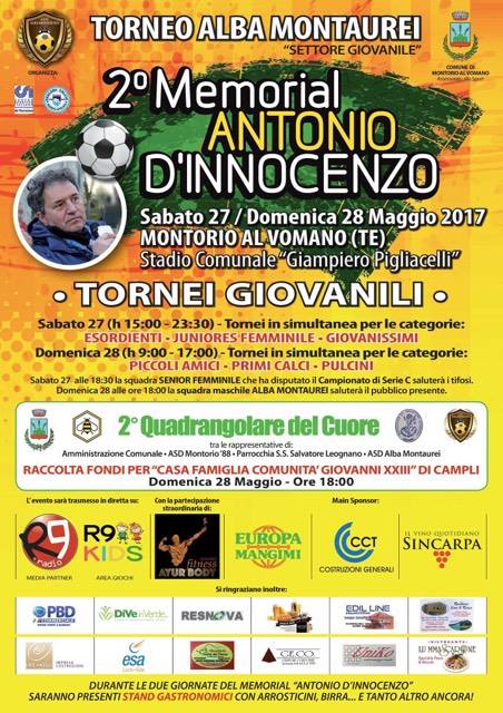 Il 27 e 28 maggio a Montorio il Torneo di calcio giovanile “II° Memorial D’Innocenzo”