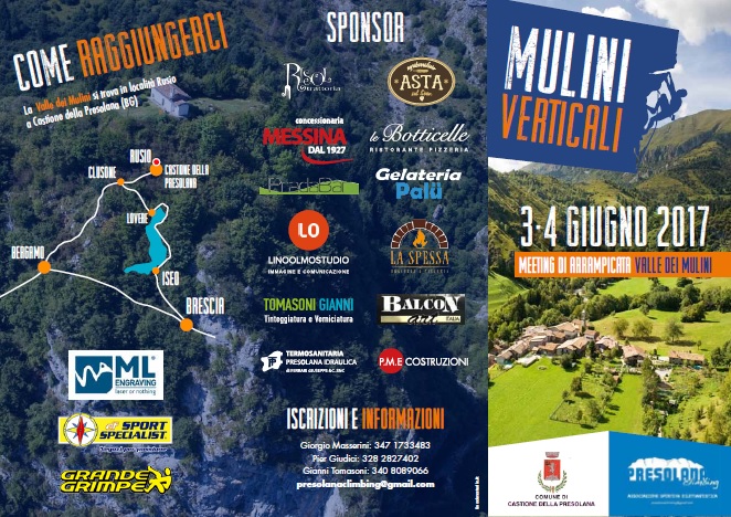 Dal 3 al 4 giugno 2017 Castione della Presolana ospiterà gli appassionati dell’arrampicata per la 1^ ed. di Mulini Verticali – Meeting di arrampicata in Valle dei Mulini.