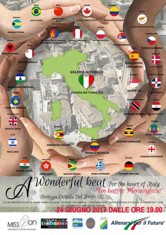 “Un battito meraviglioso”: ambasciatrici della bellezza da tutto il mondo e campioni olimpici per la costruzione della scuola materna di Civitella del Tronto
