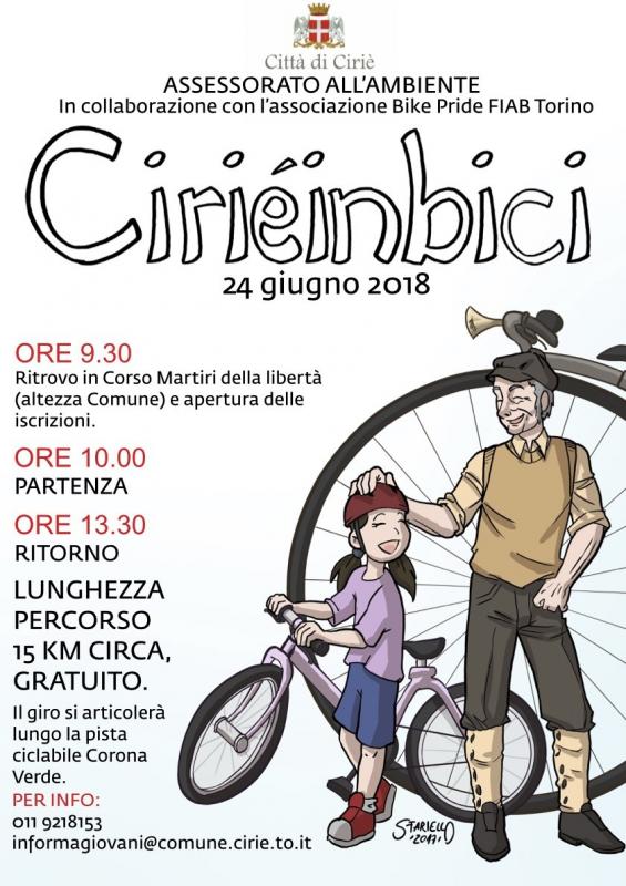 Si svolgerà domenica 24 giugno l’edizione 2018 di “Cirié in Bici”, iniziativa libera e aperta a tutti organizzata in collaborazione con l’associazione Bike Pride FIAB di Torino.