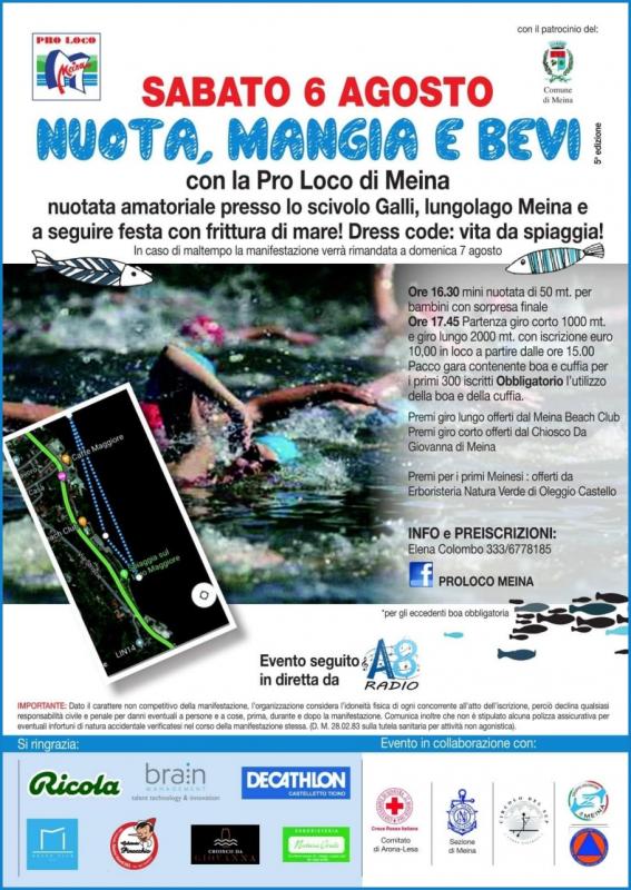 A Meina in provincia di Novara si svolge nella giornata di Sabato 06 Agosto 2022 la nuova edizione di Nuota, Mangia e Bevi.