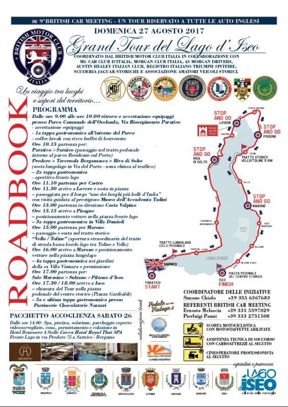 Farà tappa a Lovere domenica 27 agosto 2017 il Grand Tour del Lago d'Iseo - 9° British Car Meeting, l'iniziativa organizzata dal British Motor Club Italia che consentirà ai partecipanti di vivere una giornata interamente dedicata alla passione per le auto storiche e al piacere di guidarle, alla cultura del territorio e all'immancabile buon cibo.