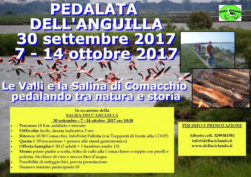 Pedalate Enogastronomiche in occasione della Sagra dell' Anguilla di Comacchio. Cicloescursione nelle Valli di Comacchio con visita della Salina e pranzo presso lo stand gastronomico della sagra.