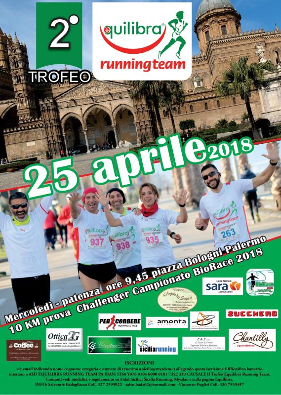 Podismo: Il 25 aprile si corre a Palermo il BioRace con il 2° Trofeo Equilibra Running Team.
