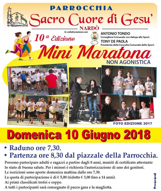 Domenica 10 giugno a partire dalle 7.30 dal piazzale della parrocchia Sacro Cuore di Gesù di Nardò si svolgerà undicesima edizione della mini-maratona aperta a tutti, adulti e ragazzi, a partire dagli otto anni d’età purché muniti di un certificato attestante lo stato di buona salute. Per i minorenni, invece, è richiesta l’autorizzazione scritta di uno dei genitori.