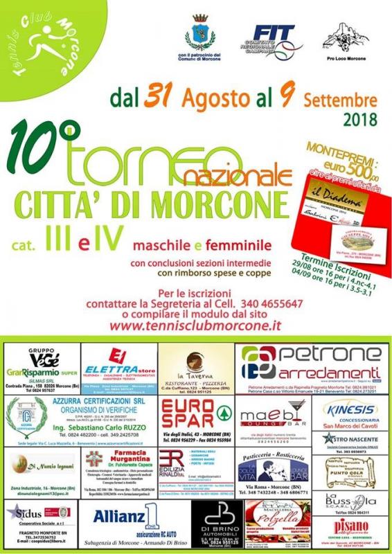 Info: www.tennisclubmorcone.it - www.facebook.com/atdtennisclubmorcone.