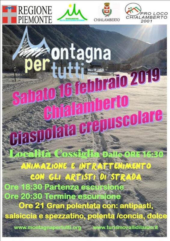 Vi invitiamo fin d'ora a segnarvi in agenda l'appuntamento del 16 febbraio alle 16.30 con la "Ciaspolata Crepuscolare" nell'ambito di Montagna per Tutti.