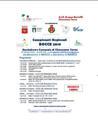 si svolgeranno i CAMPIONATI REGIONALI BOCCE 2019