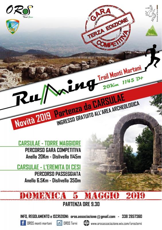 Trail "RuMMing" dei Monti Martani, giunto alla terza edizione competitiva, l'evento, che si svolgerà il 5 maggio c.a. , partirà per la prima volta dall'Area archeologica di Carsulae, più precisamente dall'arco di S. Damiano.
