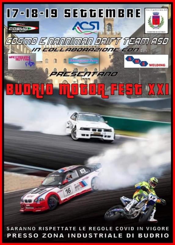 Il Cosmo Drift Team in collaborazione con NANNIMAN e "qui ed Budrio" con la supervisione e assistenza di ACSI Motorsport presentano: “ Budrio Motor Fest 2021”.