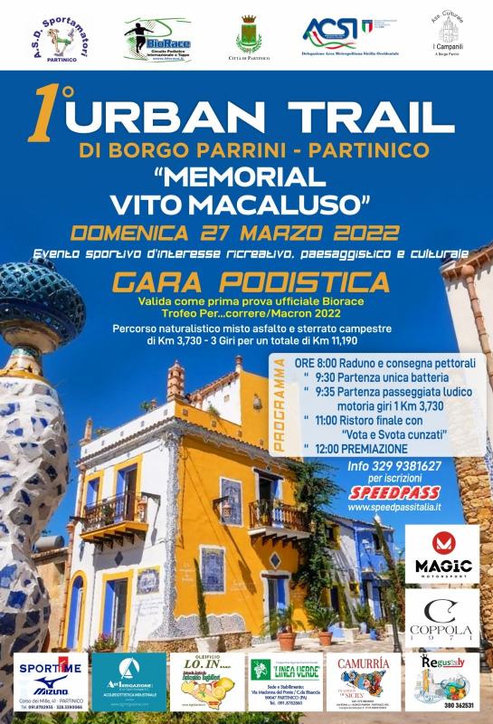 1° Urban Trail di Borgo Parrini Partinico (PA) Memorial Vito Macaluso km 11,190 competitiva e Passeggiata Ludico Motoria km 3,730 Domenica 27 marzo 2022.